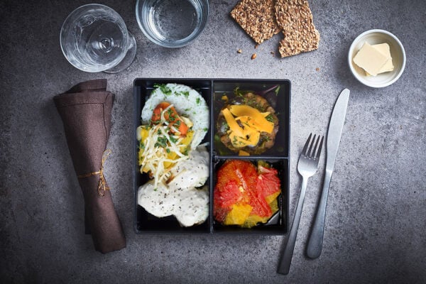Terrine moelleuse de poisson, fondue de poireaux, riz au citron