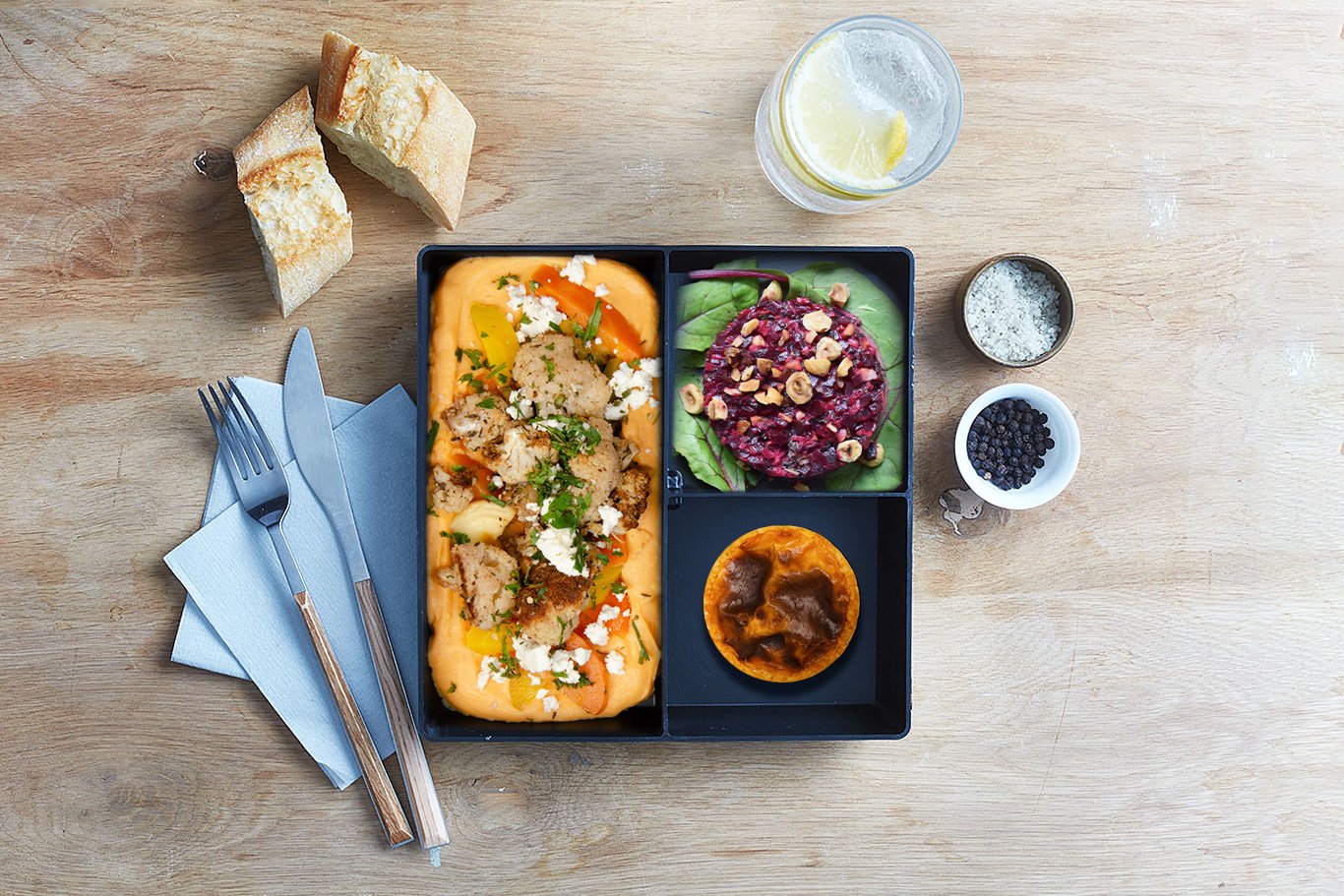 Salade de betterave à la noisette, vinaigrette fatoush