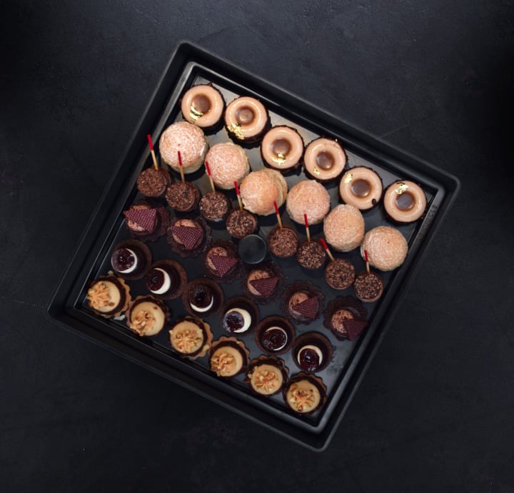 - 6 Crème brûlée pop corn, cœur coulant caramel
