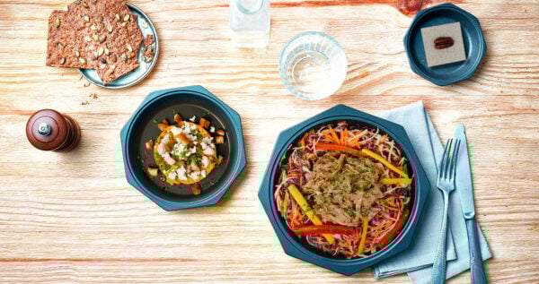 Effiloché de porc confit au miso, salade de chou aux agrumes et écrasé de pomme de terre